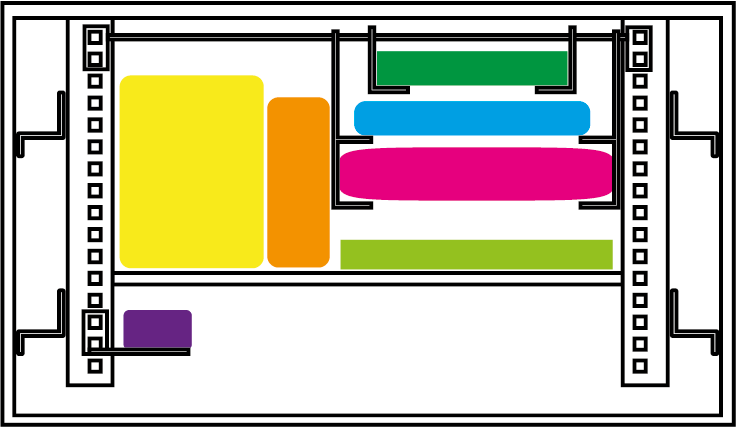 This setup consisted of two modems and two servers: a DSL modem for the internet and an ISDN modem for the telephone system, a server for administering the VoIP phones, and a server for backing up the NAS. There was enough space in the server cabinet to accommodate the backup storage, but not enough space to have all the devices stand upright. Since the "attractive design" meant it wouldn't be aesthetically pleasing or practical to stack everything on top of each other, I got creative.